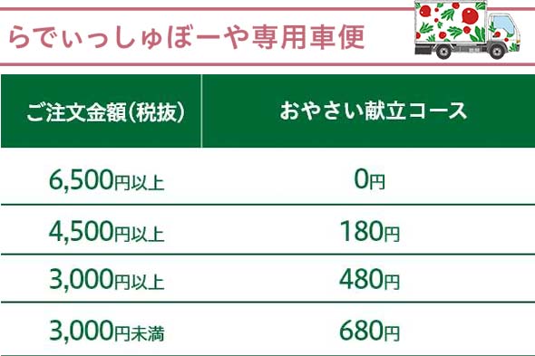 8週目までは4,500円(税抜)購入で、専用車・ヤマト宅急便ともに配送料無料となります。