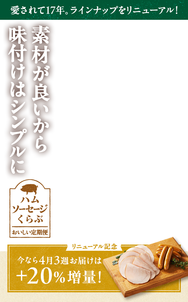 肉・魚・お水など、日ごろよく使う食材も「おいしい定期便」がお得。味はもちろん品質もお墨つきの食材を、ここだけのお求めやすい価格でご用意しました。