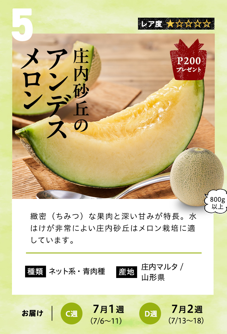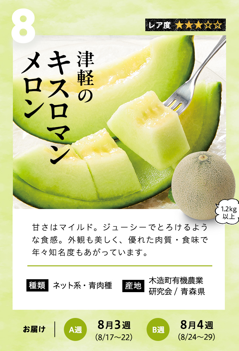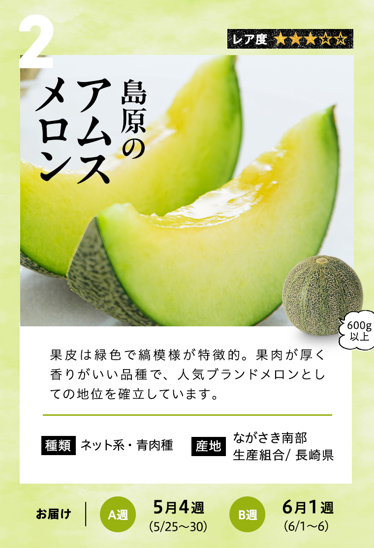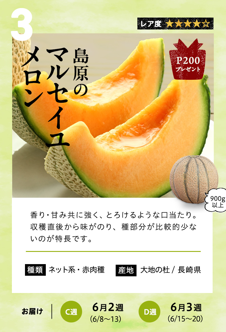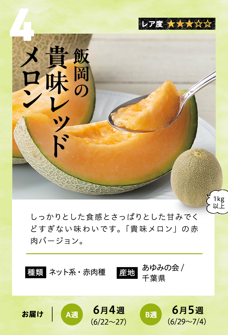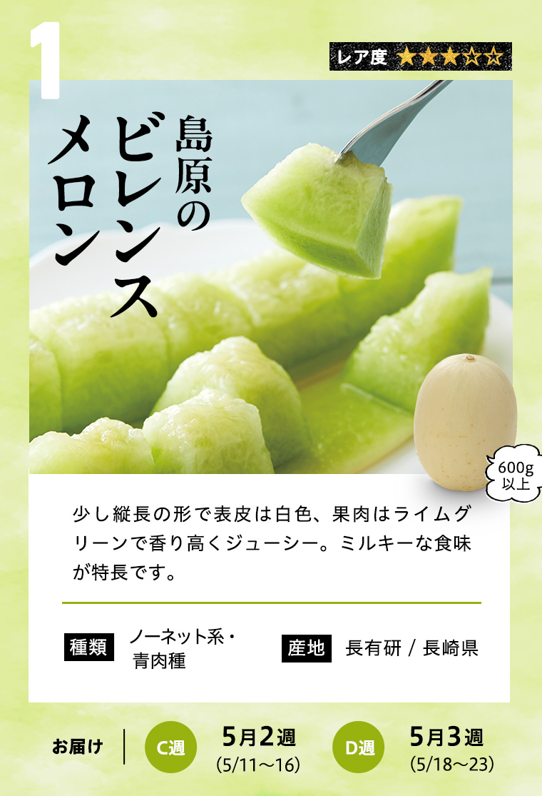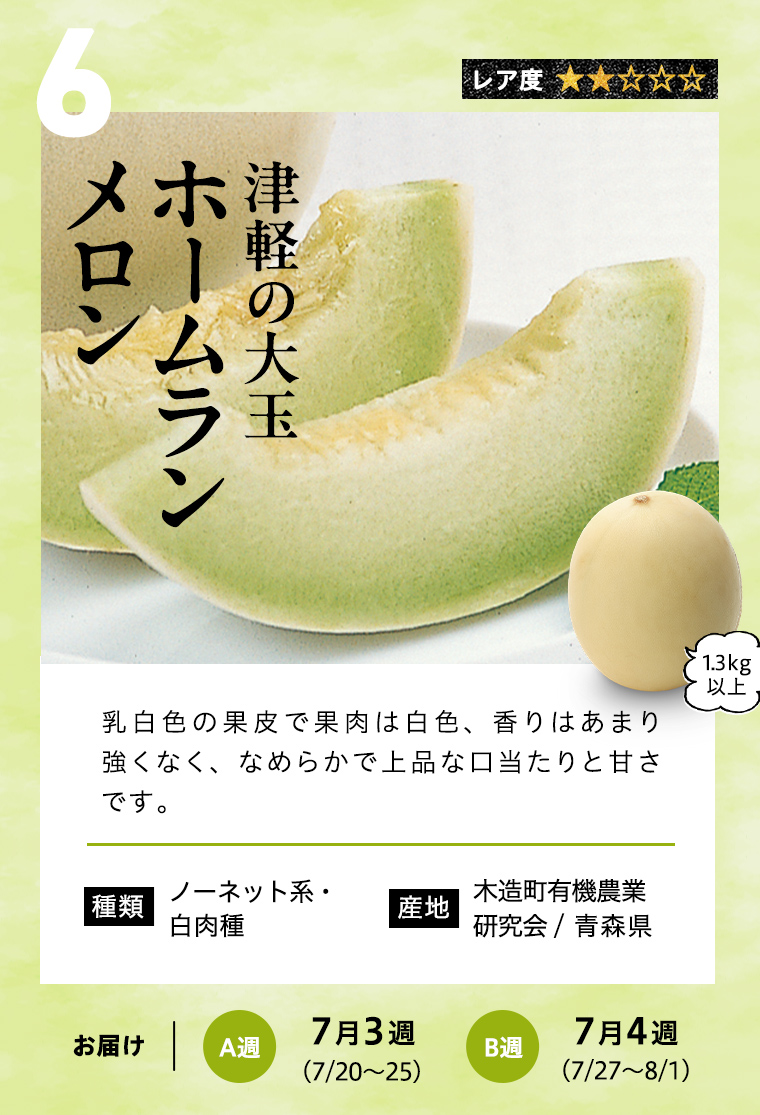 ※天候などの状況により、お届け週、お届けする品種、お届け量目などが変更になる場合があります。また、お届けが延期になる場合や、欠品となる場合もありますので、あらかじめご了承ください。