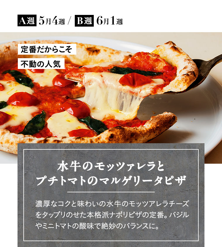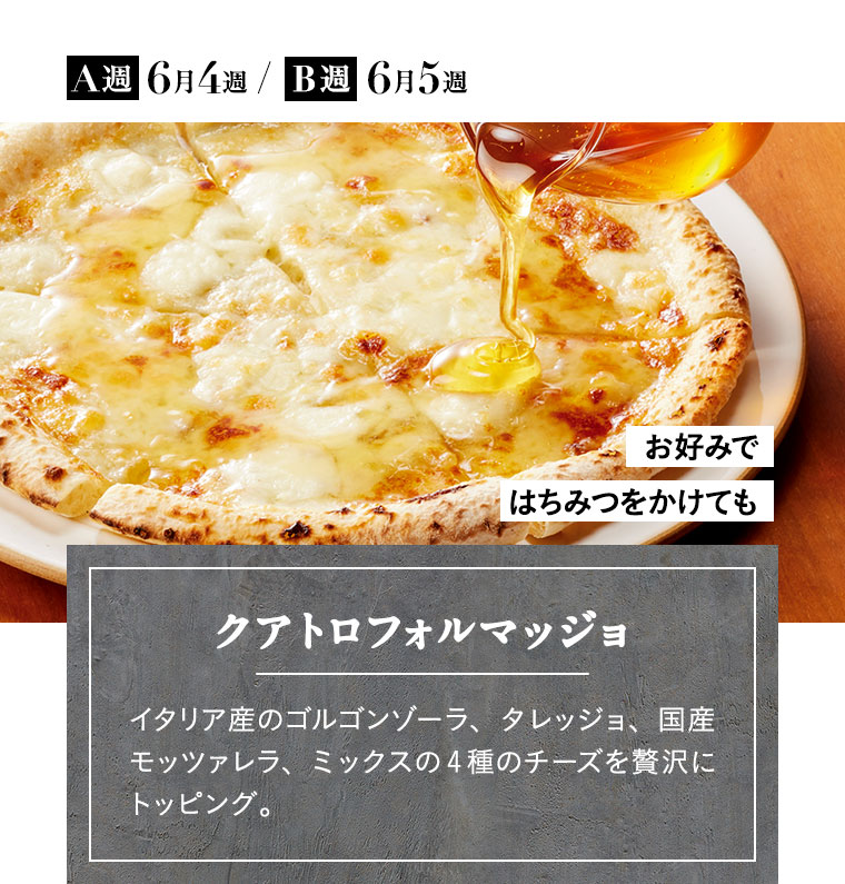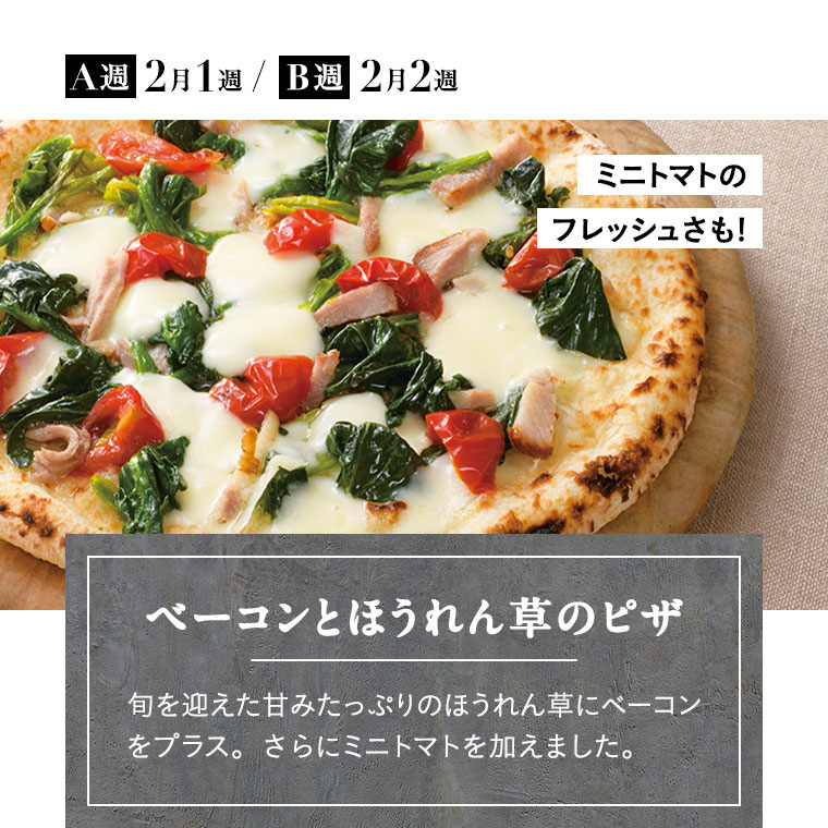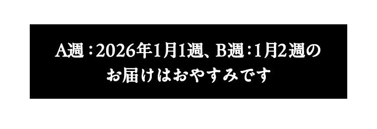 4週間をひとつのサイクルとしてお届けしており、1週間ごとにA・B・C・Dの記号で表しています。商品によってそれぞれ設定されていますので、「お届け週」の項目を確認ください。