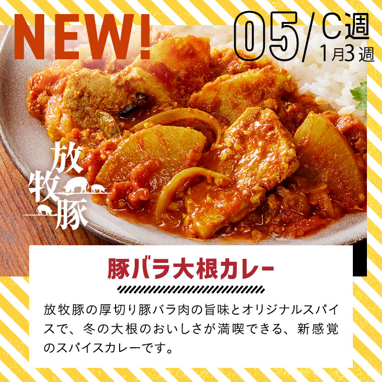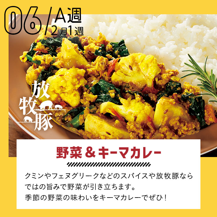 4週間をひとつのサイクルとしてお届けしており、1週間ごとにA・B・C・Dの記号で表しています。商品によってそれぞれ設定されていますので、「お届け週」の項目を確認ください。