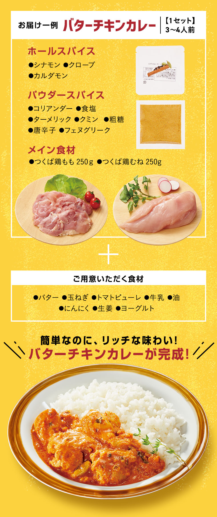 スパイスを買っても使い切れず、破棄することもありましたが、使い切りでムダがなく、家族にもスパイスカレー、大好評です。