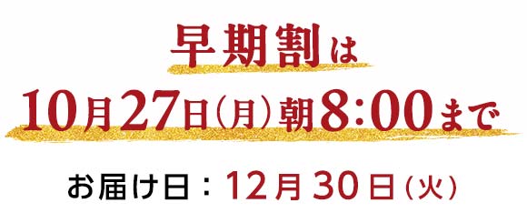 ※特に31日着をお選びいただいた場合、天候事情・年末の交通事情等で年内のお届けができなくなる可能性もございます。あらかじめご了承のうえご購入下さい。